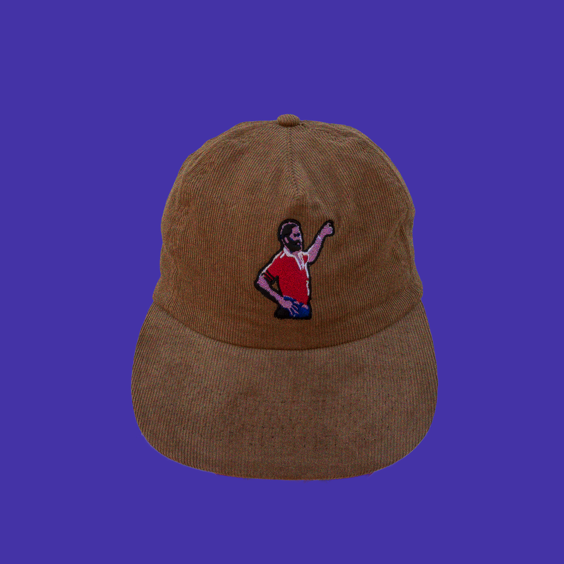 Beautiful 5-panel camel corduroy cap with an adjustable velcro strap at the back.