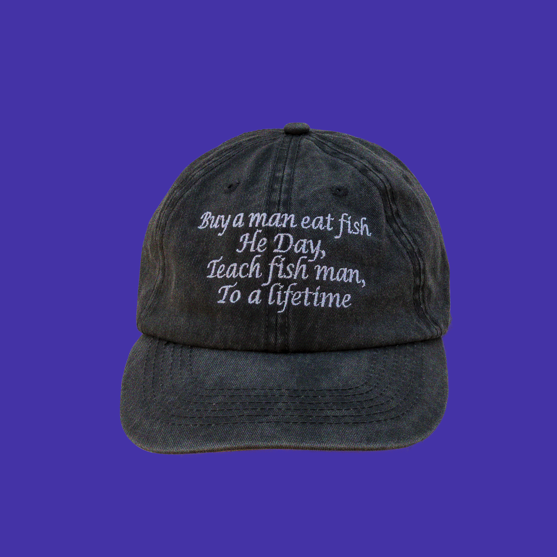 embroidered onto a benaaide fokken 100% cotton faded black fokken dad cap with a benaaide brass clasp at the back.